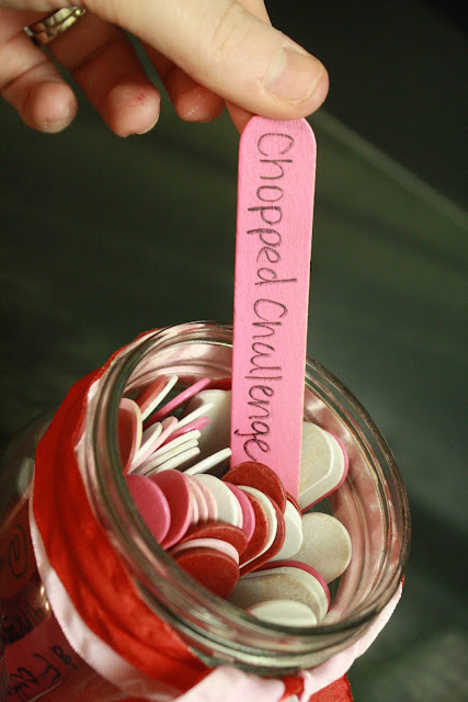 Great idea, but out of curiosity, do you guys have guidelines as to when or how often you choose a stick? Do you rotate between red, dark and light pink, or is it all left to chance? @Mommy2Maddox – I too want to know about the Chopped Challenge date!